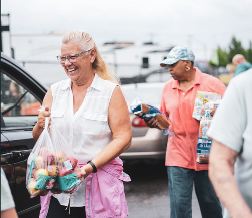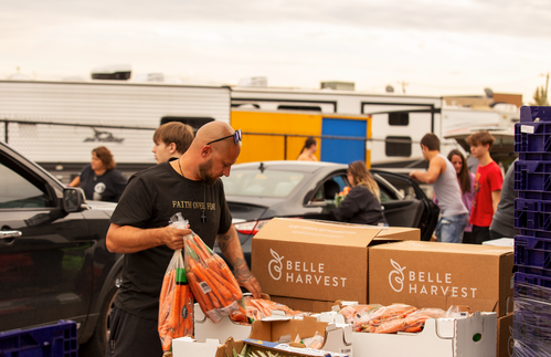 Free Farmers Market is our weekly drive through food pantry. Every Wednesday from 6-8pm, we give a weeks worth of groceries to about 500 families throughout Harrison + the surrounding communities.